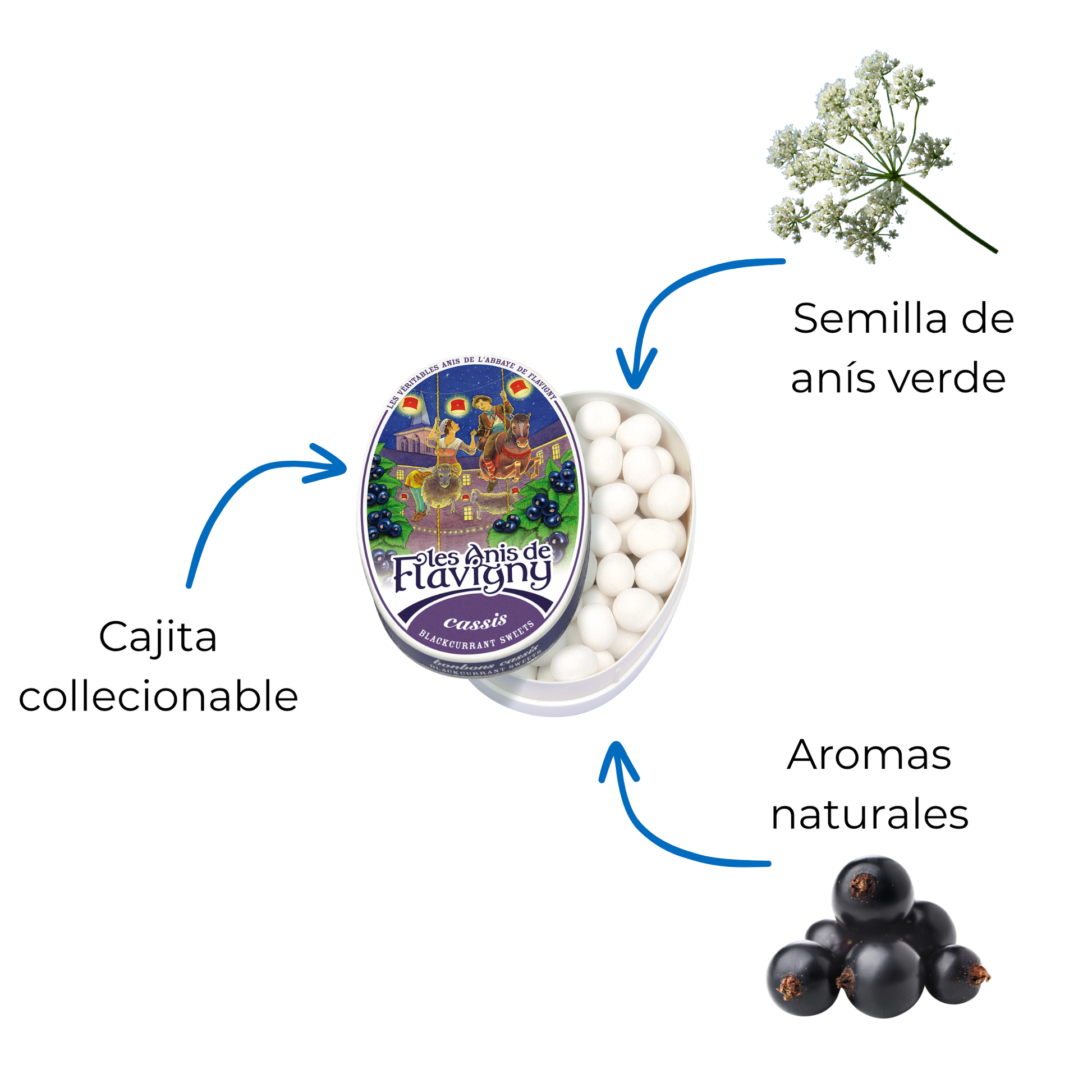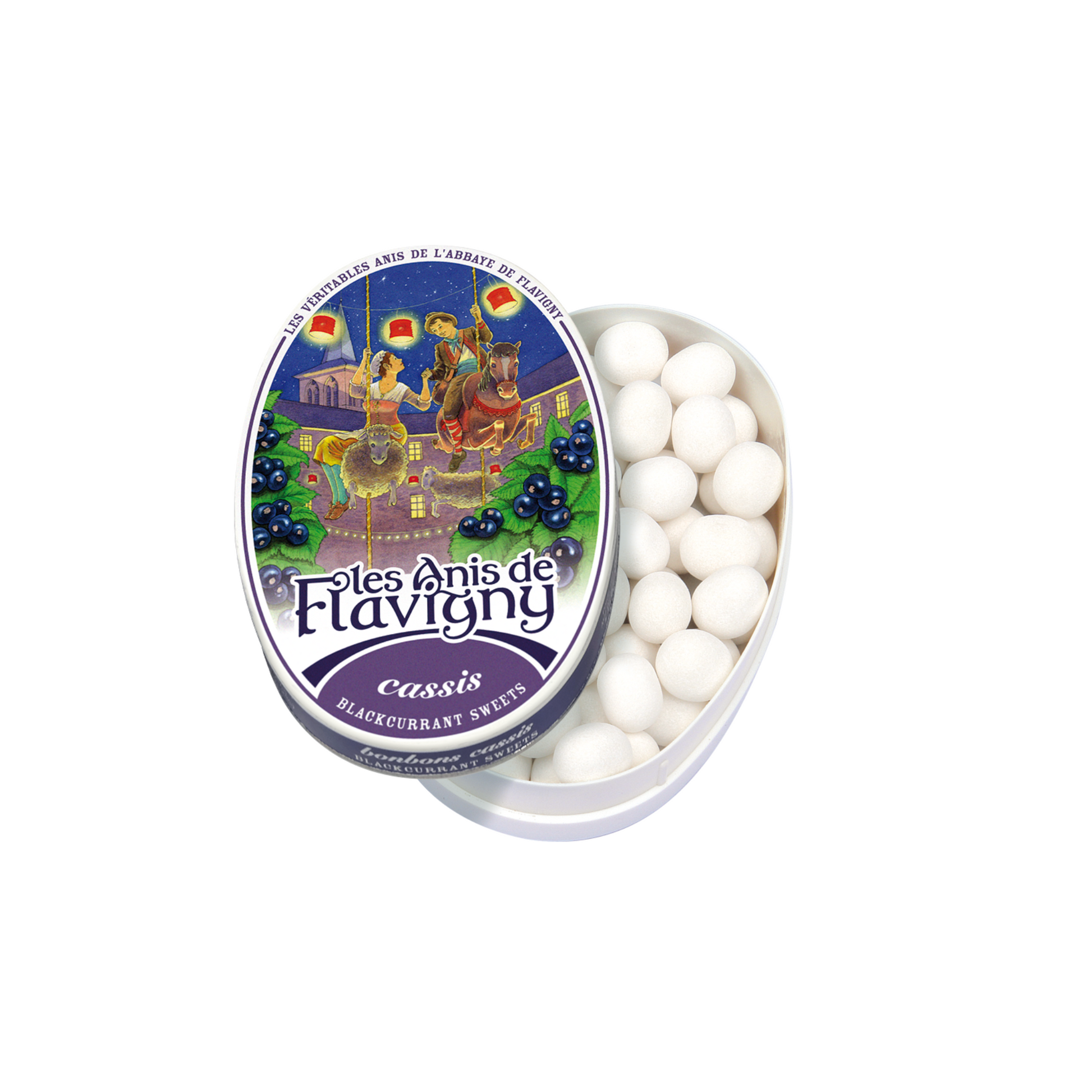 Descubre el sabor único de los anís de Flavigny, hechos con semillas de anís y cubiertos de un jarabe de azúcar de sabor natural. ¡Atrévete a probar estas bolitas divinas! Los dulces siguen fabricados en la abadía Saint-Pierre en Flavigny-sur-Ozerain. El dibujo sobre la cajita representa un pastor y una pastora enamorados ya que las grageas se ofrecían para celebrar el amor y la fecundidad...