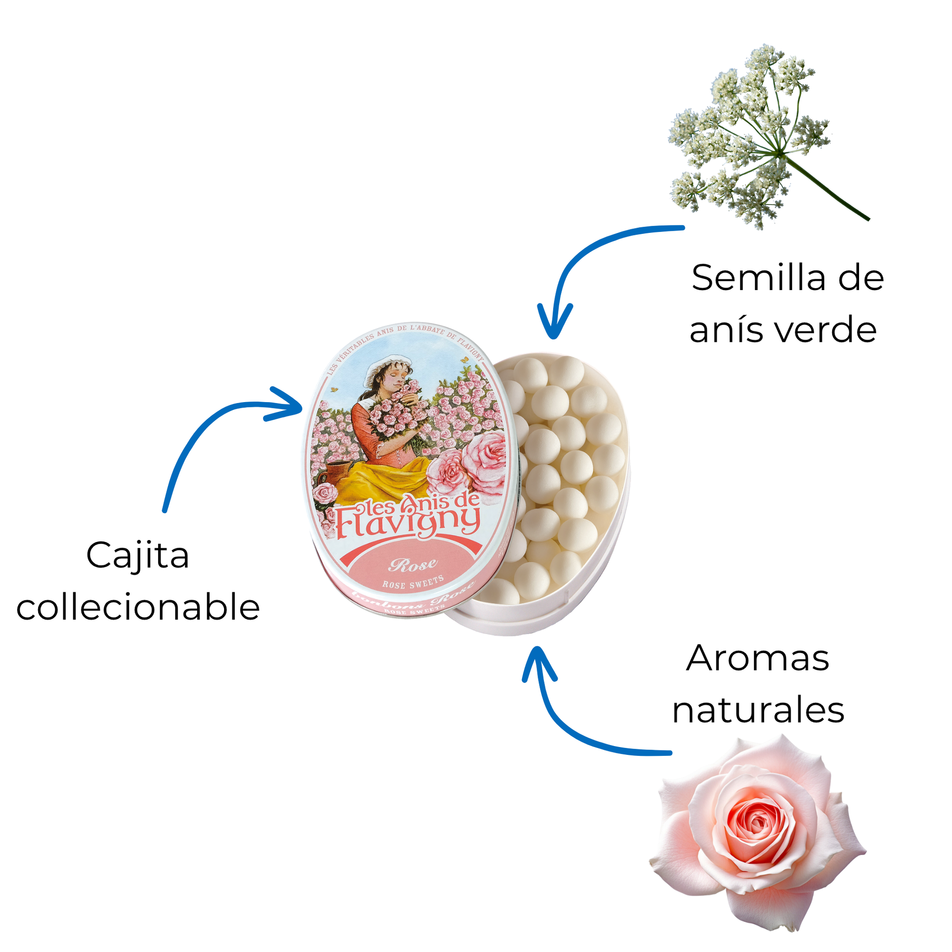 Descubre el sabor único de los anís de Flavigny, hechos con semillas de anís y cubiertos de un jarabe de azúcar de sabor natural. ¡Atrévete a probar estas bolitas divinas! Los dulces siguen fabricados en la abadía Saint-Pierre en Flavigny-sur-Ozerain. El dibujo sobre la cajita representa un pastor y una pastora enamorados ya que las grageas se ofrecían para celebrar el amor y la fecundidad...