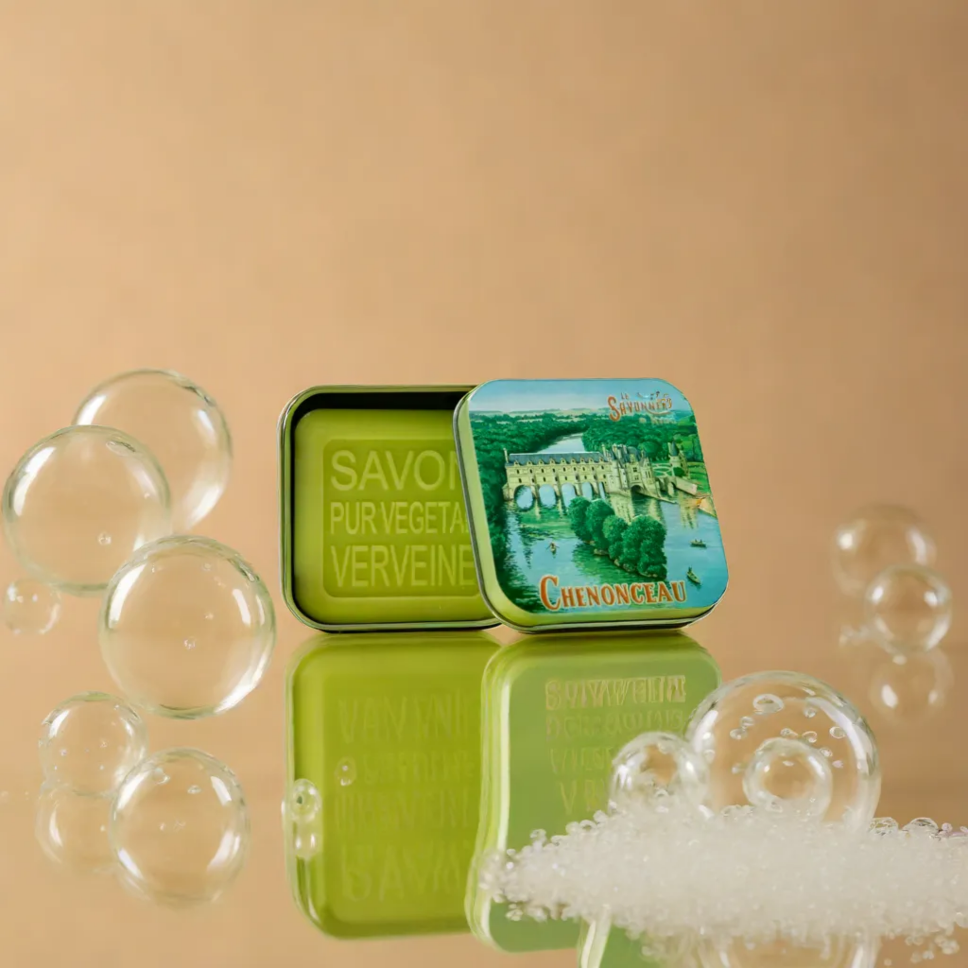 El savoir-faire ancestral y la riqueza del territorio de Provenza, en el Sur de Francia, permiten a la Savonnerie de Nyons de imaginar y fabricar jabones de alta calidad. Este jabón de verbena viene en una bonita caja metálica vintage de los castillos de la Loire, hay 3 opciones de diseño. ¡Ideal para un regalo!
