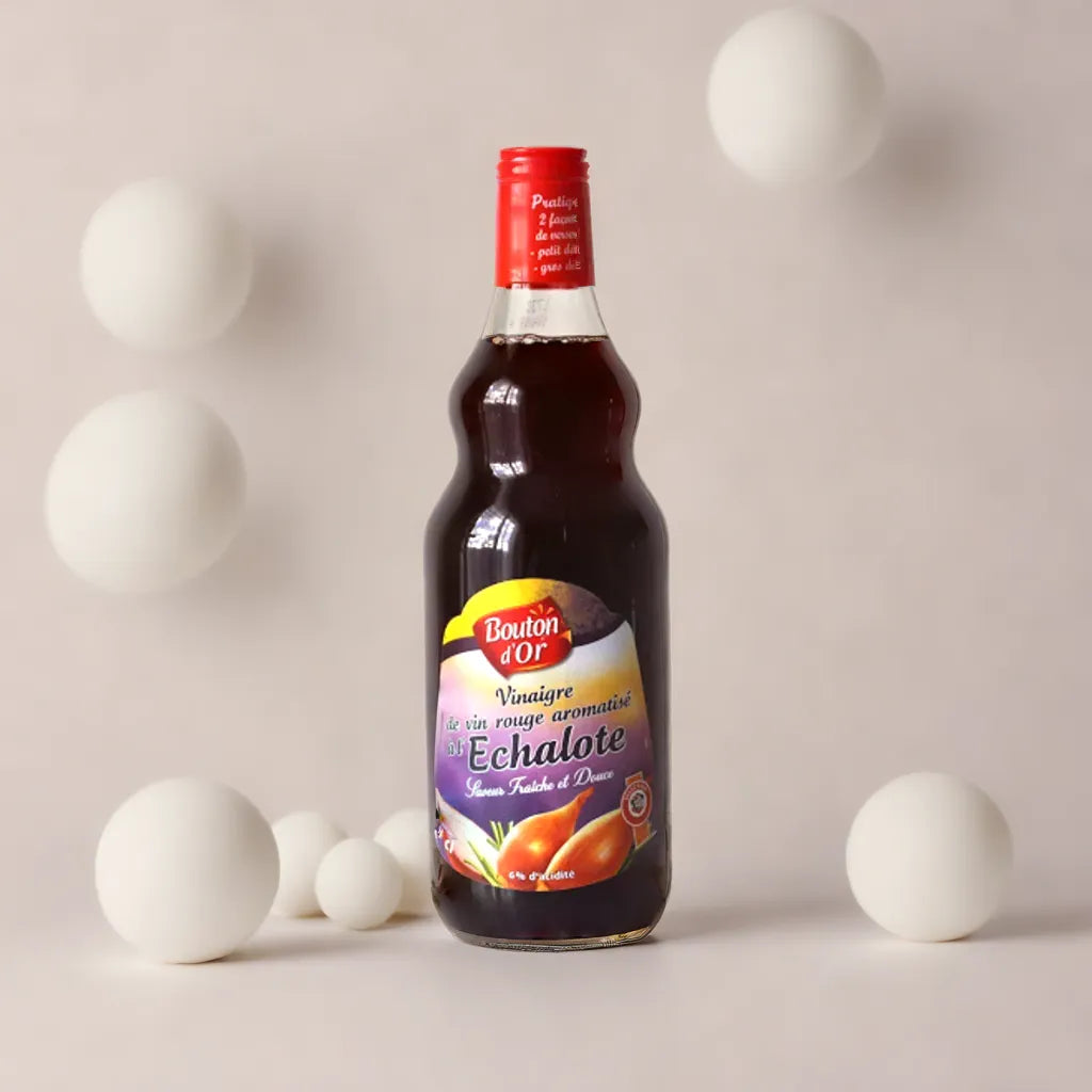 El vinagre Bouton d'Or de chalote es delicioso en vinagreta para ensaladas o en marinada para carnes y pescados.